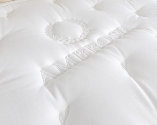 Nazwa materaca AMBROSIA oraz grecki motyw zostały przeniesione bezpośrednio do haftu pokrowca materaca.